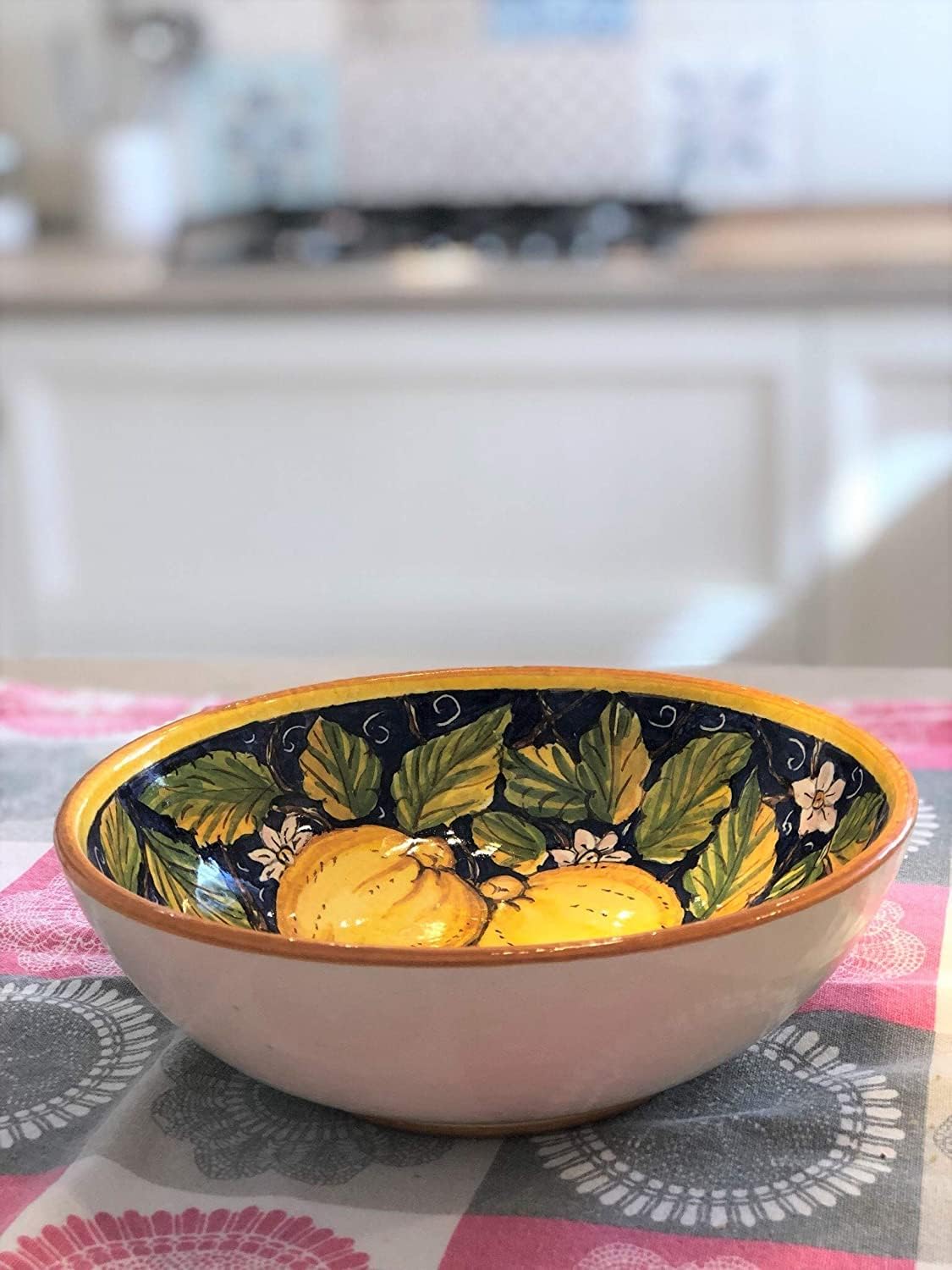 THE TOTAL PRICE INCLUDES CUSTOMS DUTY TAX PRODUCT INFORMATIONCeramic small bowl for any use .Decoration: Collection three lemons ; Composition of three lemons , leaves, flowers and curls, on a blue background, yellow/orange borderDimensions: 7,87 inch x 7,87 inch x 2.75 inch hPRODUCT INSTRUCTIONSAll our products are lead-free and can be used for foods . Dishwasher safe Do not use in microwave Do not use in oven