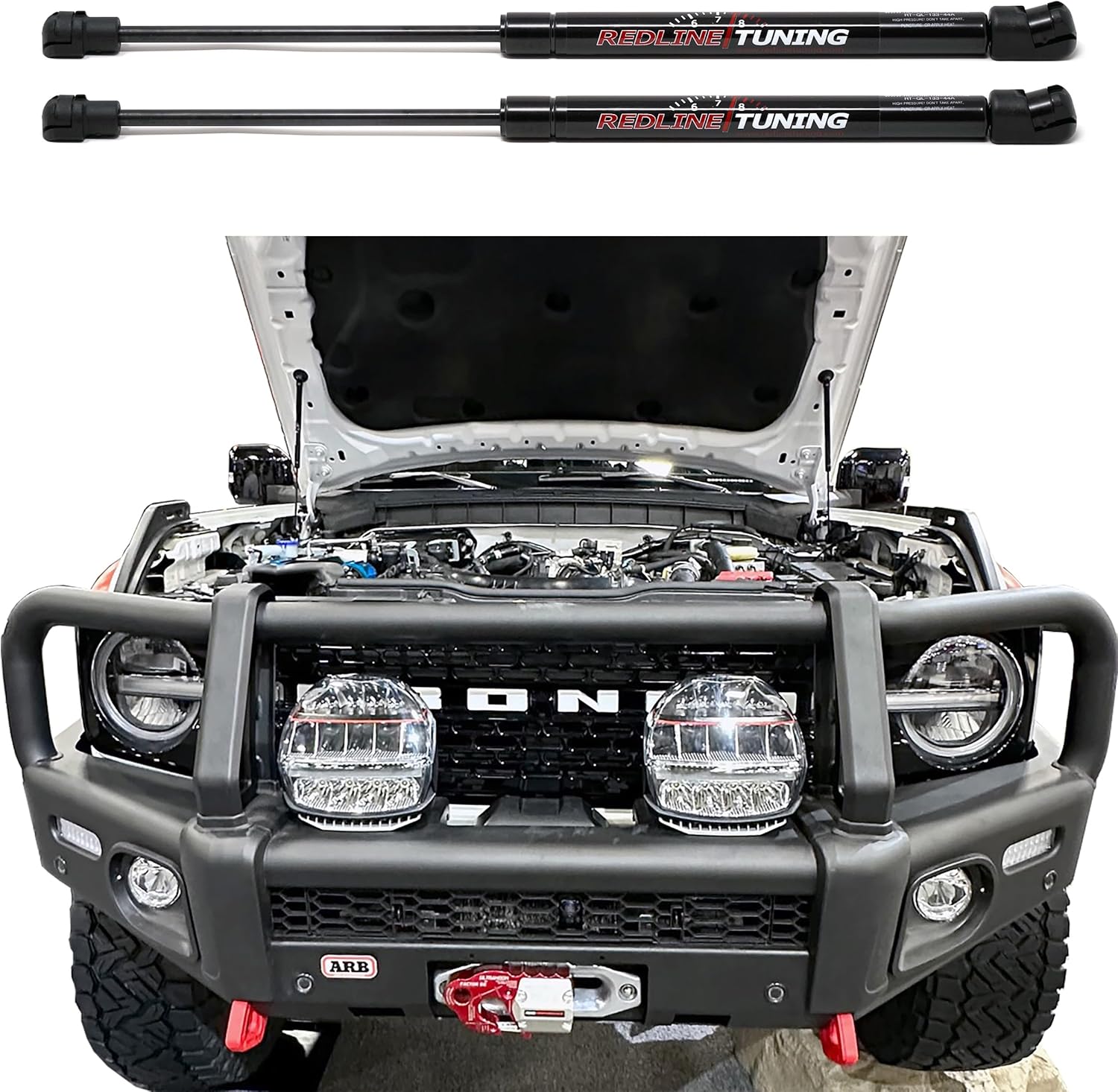 Redline Tuning Hood Quicklift Systems are designed to clean up your engine bay by eliminating the hood prop-rod. The clunky prop-rod is always in the way, but after removing the prop rod and installing a Hood Quicklift System the engine bay is free from obstructions. All Quicklift Systems utilize progressive-rate gas springs that will lift and hold your hood open. Simply start to lift the hood with one hand and it will rise unassisted in a smooth and controlled motion.