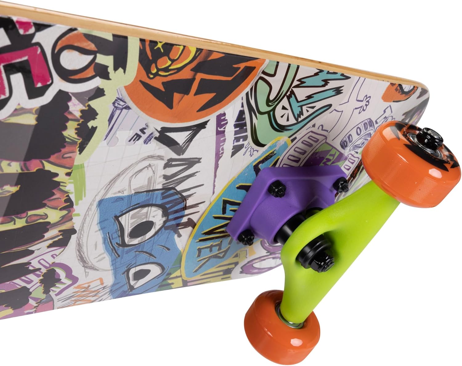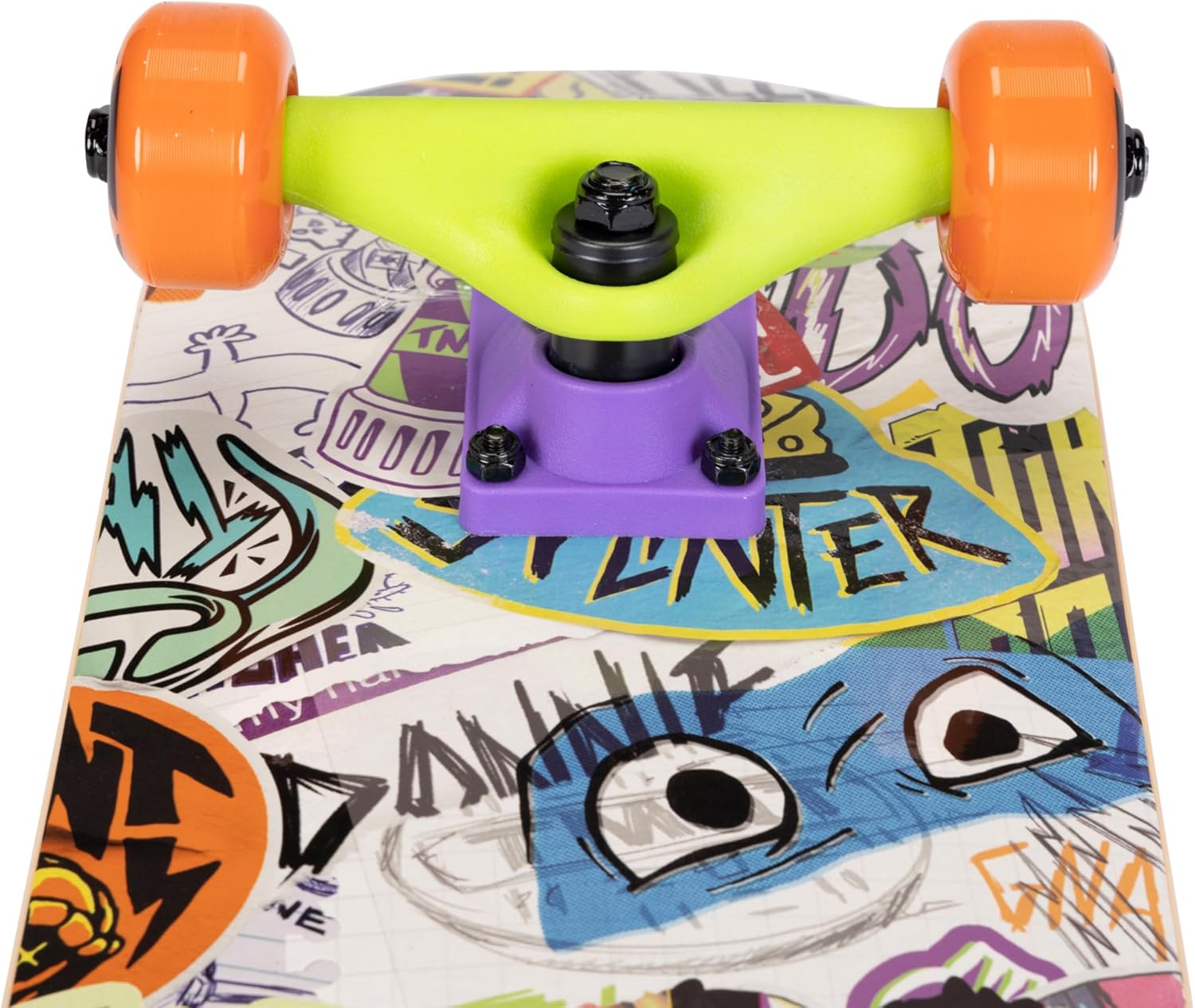 Ride in style with the TMNT Popsicle Board! Features fun TMNT graphics on both the deck & grip tape! 50mm 95A wheels and Carbon Steel 608ZZF bearings make for a smooth ride. Made from a durable 8-ply Maple deck, you will feel like you can tackle any feature you lay eyes on. Featuring a classic popsicle shape deck with wide kick tails this board will give you pop and stability to take your riding up a notch