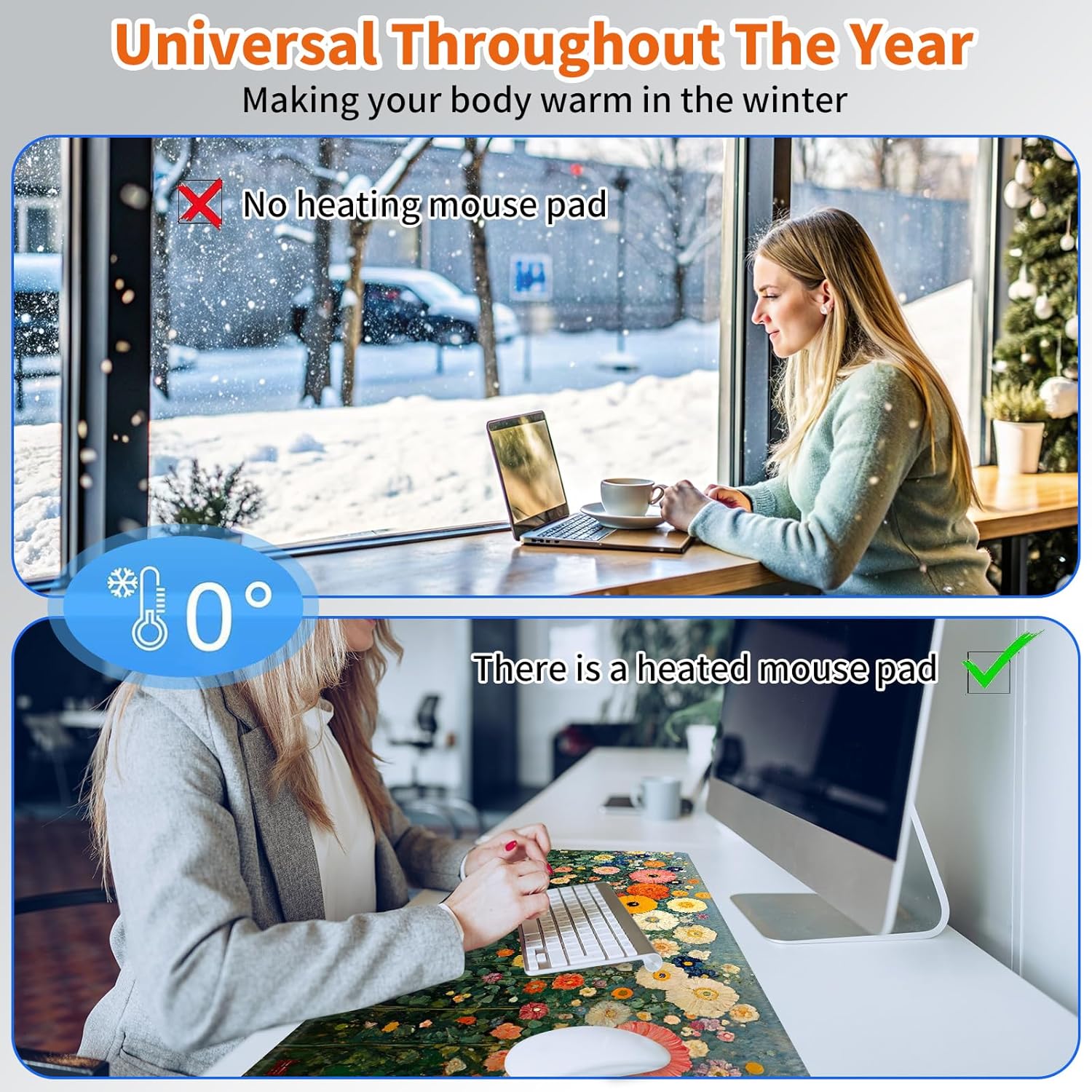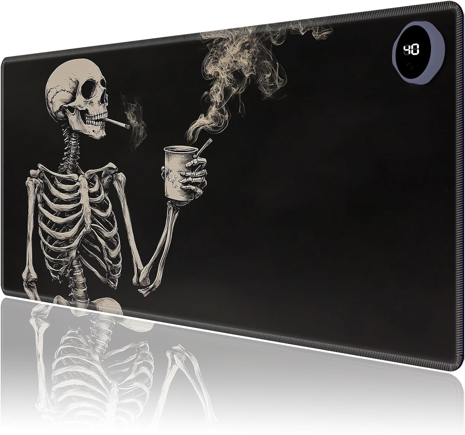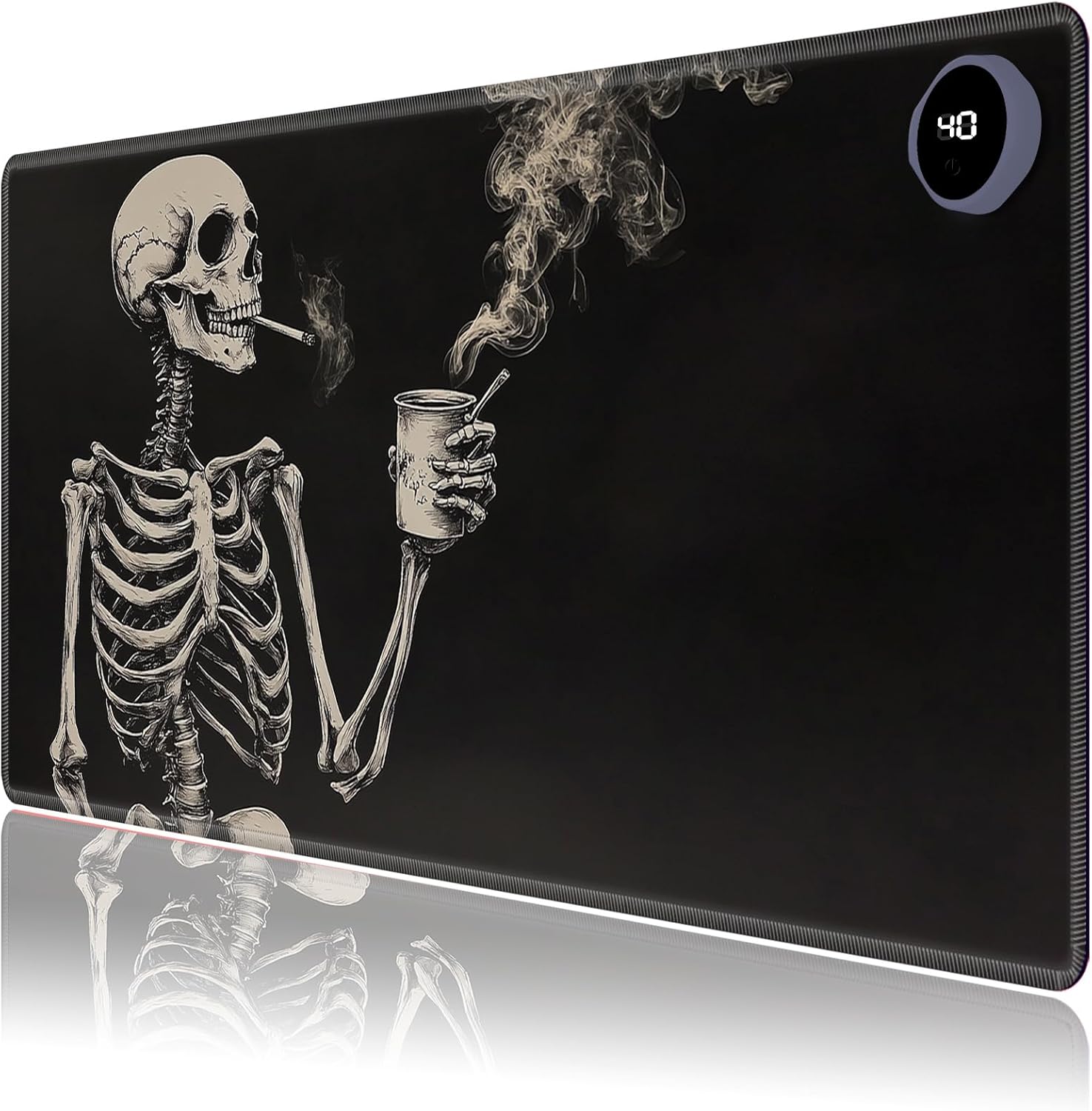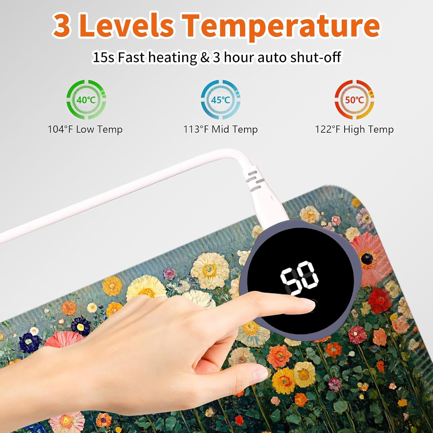 Heated Desk Mat with 3 temperature settings: --1.Low (40°C / 104°F) for gentle warmth --2.Medium (45°C / 113°F) for consistent comfort --3.High (50°C / 122°F) for a quick boost of heat Auto Shut-Off Design --Mousepad warmer includes 3-hour auto shut-off timers.Long-press the power button until it flashes to activate.helping you save energy Durable Material --Crafted from smooth PU leather,Gaming Mouse Pad Warmer features a waterproof and easy-to-clean surface --Heated Desk Mat Non-slip base keeps it securely in place, providing a stable surface for your keyboard, mouse, and laptop Large & Multi-Functional Design --Large Mouse Pad at 31.5 x 13 x 0.08 inch (80x33x0.2 CM) is spacious enough for your desk essentials, keeping your workspace neat and organized Pattern Printing Design --Unique Pattern Printing Heated Desk Pads decorate your study, computer desk, bedroom or office,perfect accessory for any modern office and home Note: When using PU leather desk mat, do not place any items that are easily ignited or damaged by high temperatures, such as laptops, batteries, or other items that are not resistant to high temperatures.If you smell some leather odor during the first use, it will disappear after being left for a period of time.Due to long-term curling and cold weather,the sides of the heating mouse pad are slightly raised.After heating, warm mouse pad will return to a flat state. Package include: --for Heated Desk Pad x 1