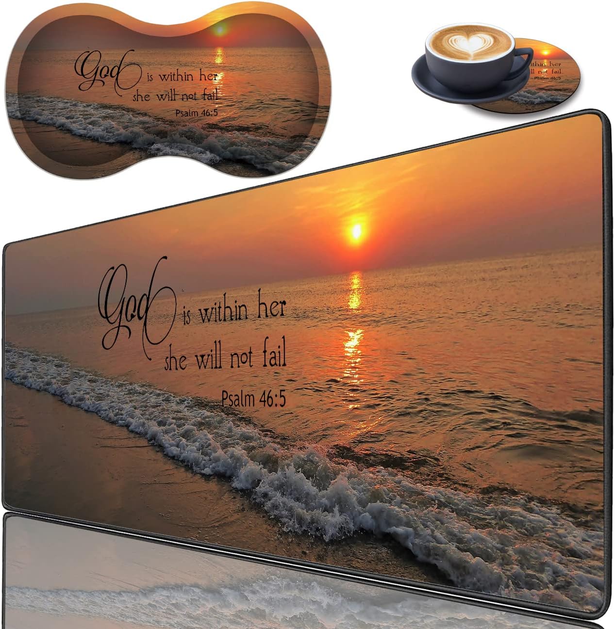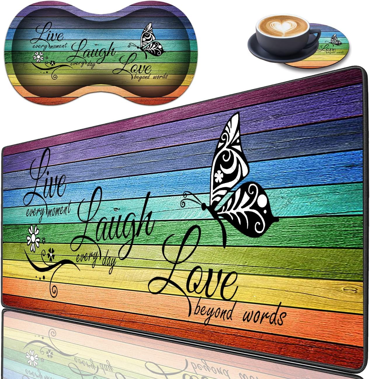 3 piece mouse pad set, table pad fabric, dainty sewn edge, ergonomic mouse wrist pad to add personality to your computer or laptop area.Product Size:Large mouse pad: 31.5"X 11.8"X 0.08"Mouse Wrist Rest: 6.8"X 3.7"X 0.98"Coaster: 3.93"X 3.93"X 0.08"Features:- Smooth surface - ergonomic mouse wrist rest- Protect desk from moisture and scratches- Non-slip rubber base - easy to clean - secure stitching edges- Desk pad portable designPackage Includes:1 X Pattern Large Desktop Mouse Pad1 X Mouse Wrist Rest1 X pattern coasterIf you have any questions, please contact us by email and we will respond within 24 hours.