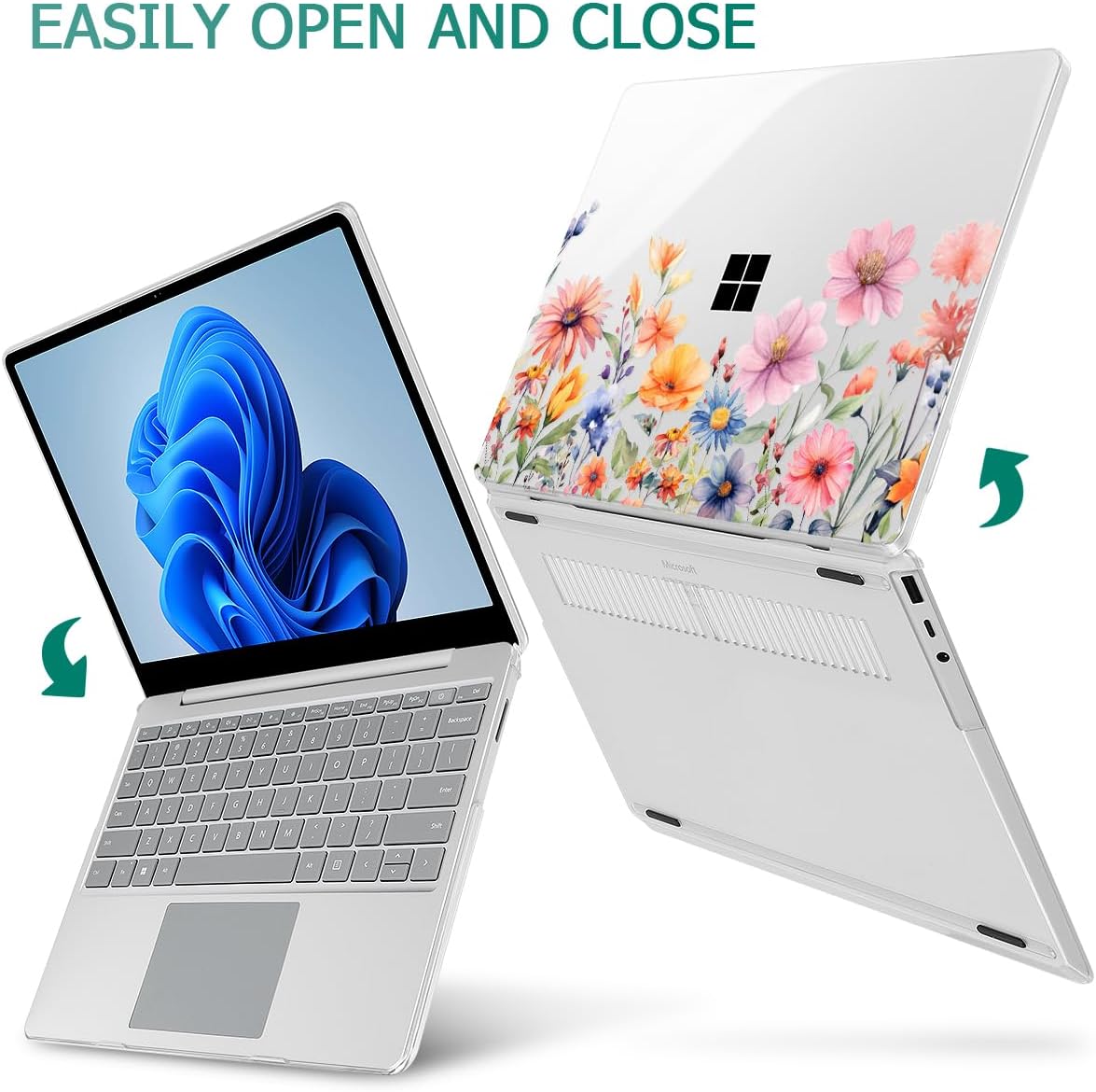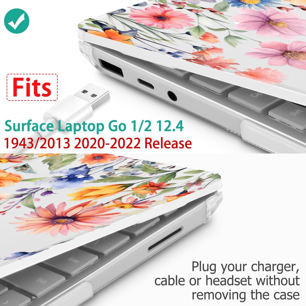 Mektron For Surface Laptop G O3/Go 2 Cases [ 2022-2023 Release ] Hard Shell Case with Keyobard cover and Screen Protector &Dust plug Compatible with: Fit For [2022-2023 Release ]Microsoft Surface Laptop GO 3/GO 2 Case 12.4 inch Mektron case features: 1:The Mektron case is made from polycarbonate material, slim, light weight and seamless, which is very flexible and durable, not esaily broken. 2:Exquisite finish plastic hard shell case protects your Laptop from scrapes and scratches. 3:The case allows access to all plugs and drives, plug your charger, cable or headset without removing the case. 4:The bottom case is designed with two rows of bottom ventilation, allowing safe heat disbursement, help your Laptop staying cool. 5:Two pieces of durable polycarbonate covers protect your Laptop from scuffs and scratches. Snap on design, easy on and off. Package including: 1x Hight Quality PC Hard Shell Case + 1x Screen Protector + 1x Keyobard cover + 1x Dust Plugs