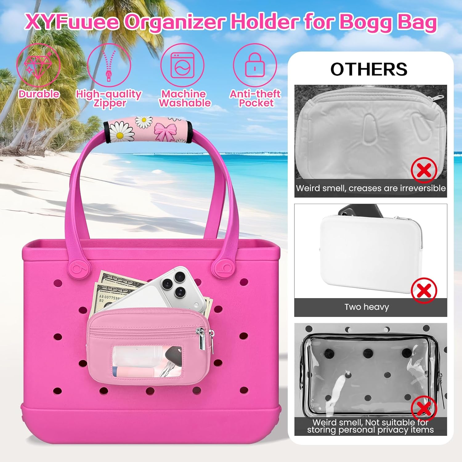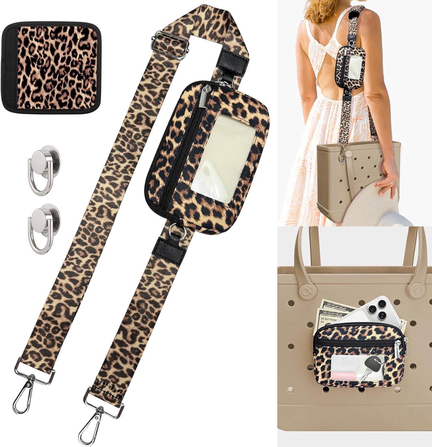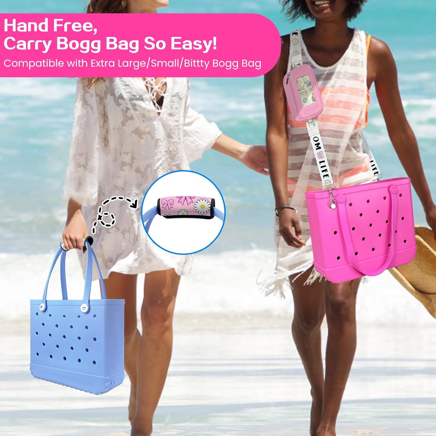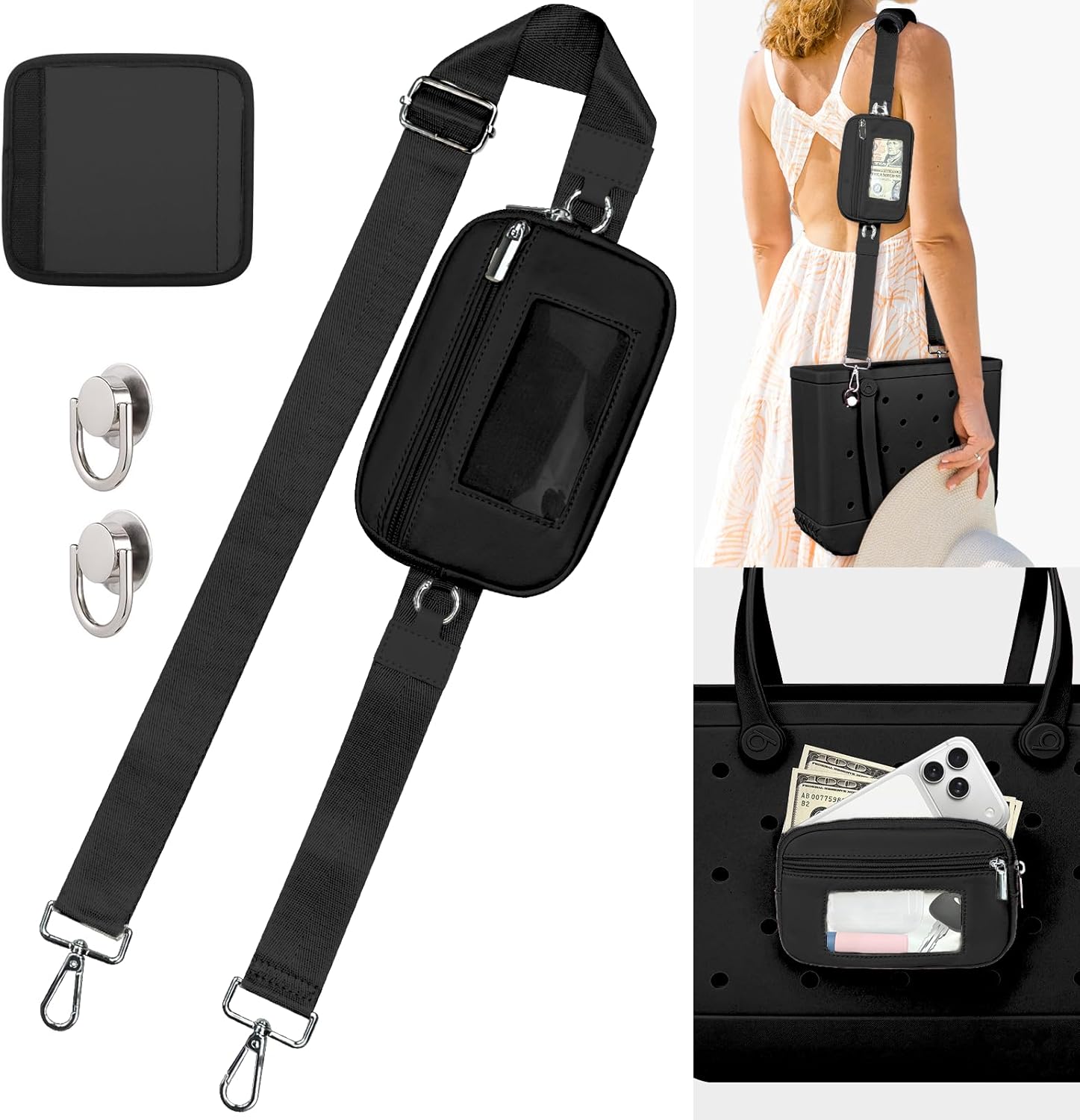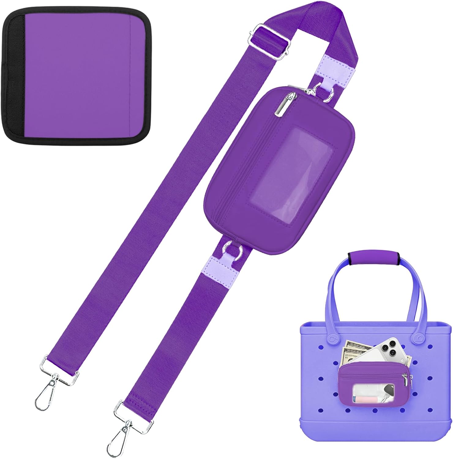 XYFuuee Phone Holder& Strap Wrap for Bogg Bag Accessories, 6 Pockets Organizer Wallet Pouch, Crossbody Shoulder Long Strap Compatible with Bogg& Simple Modern Rubber Tote Beach Bag Accessories, Momlife
