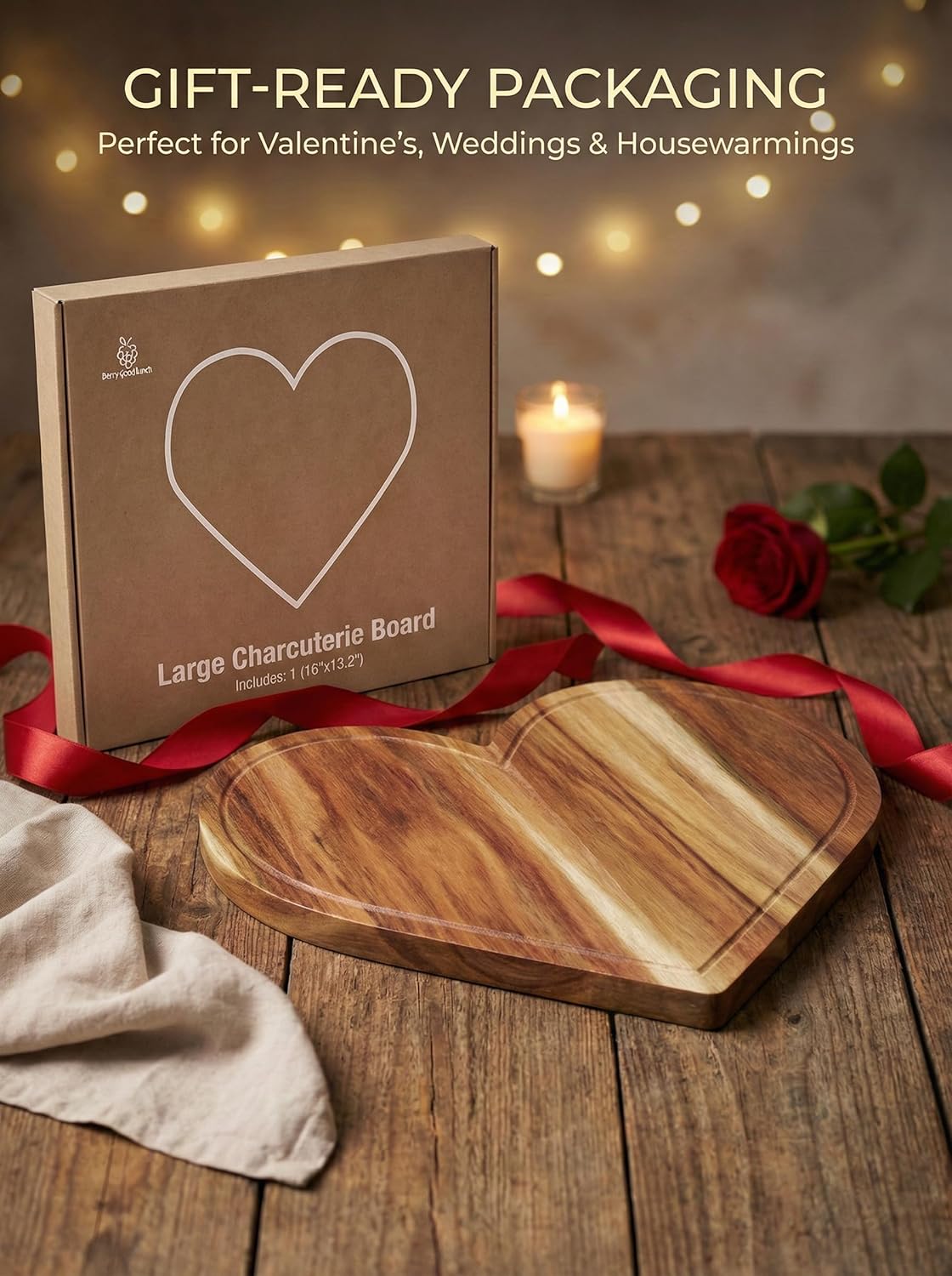| Included Components | 1 Heart Shaped Acacia Wooden Board 16" x 13.2" Inches |